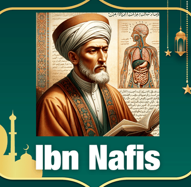 Ibn al-Nafis était un éminent médecin, anatomiste, et érudit musulman du 13ème siècle, célèbre pour ses contributions pionnières à la compréhension de la physiologie et de l'anatomie humaines. Son nom complet est Ala-al-Din Abu al-Hassan Ali Ibn Abi-Hazm al-Qarshi al-Dimashqi, et il est né en 1213 à Damas, en Syrie, qui faisait alors partie du monde islamique florissant.